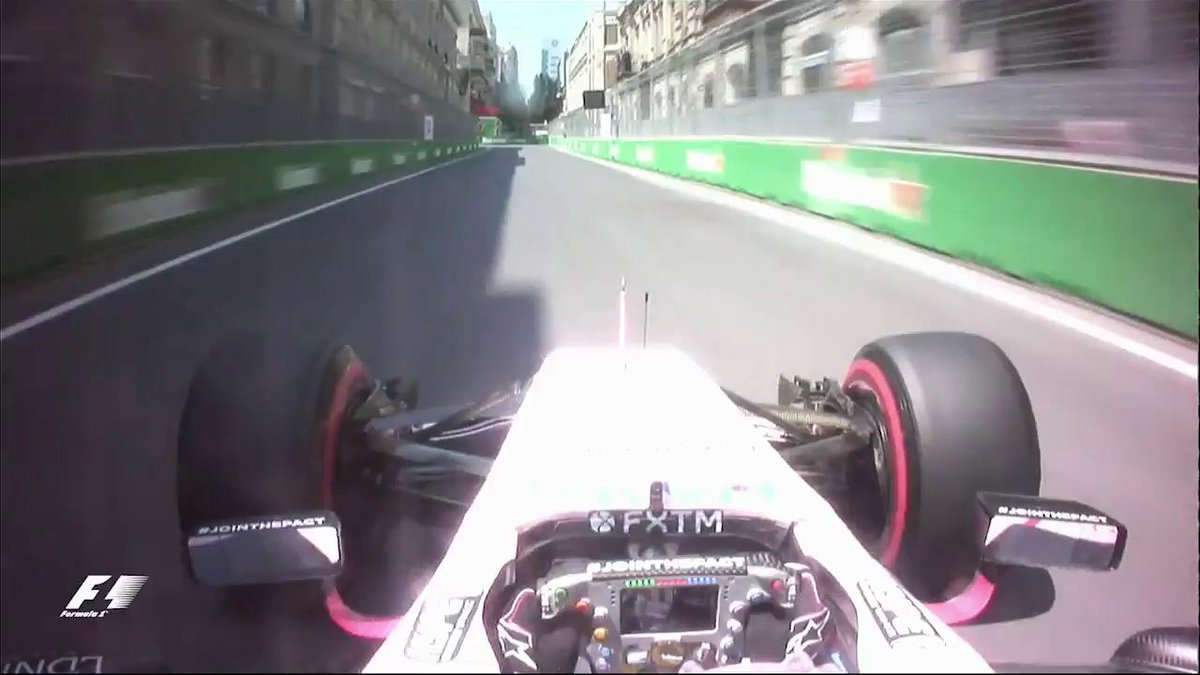 ONE HOUR TO FP2@ForceIndiaF1 and @SChecoPerez will be hoping for better luck after this crash during FP1...#AzerbaijanGP#F1Baku